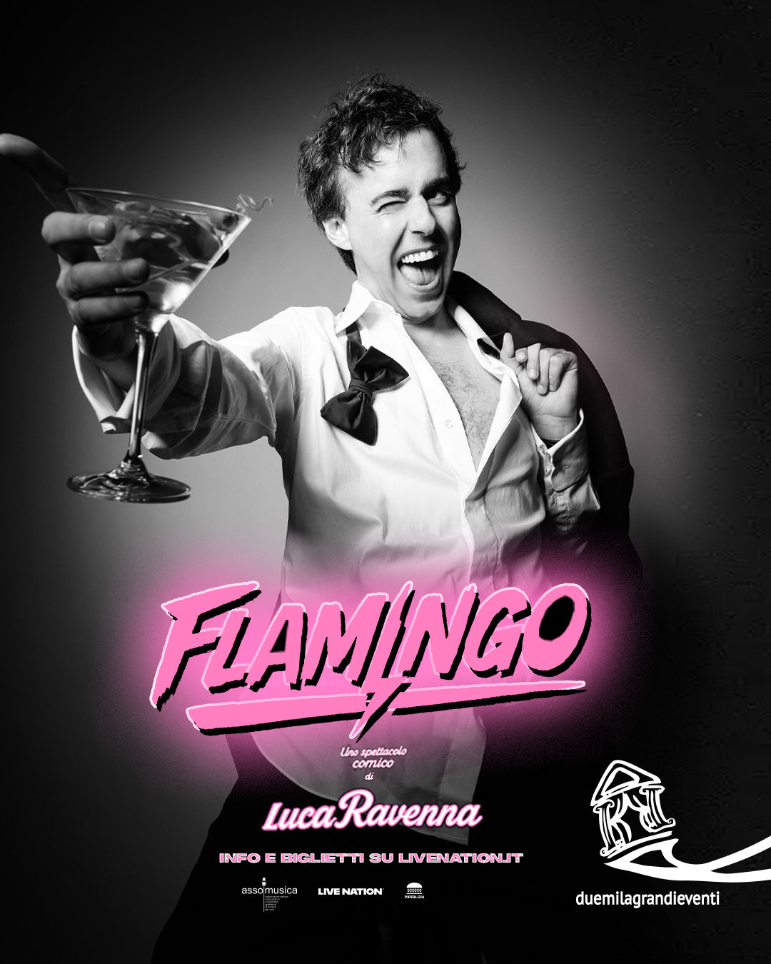 Il nuovo show inedito di Ravenna resta fedele al suo stile: ironico, dissacrante e profondamente personale. Flamingo nasce come sempre dalla sua quotidianità: tra case improbabili affittate sopra le discoteche, sogni di diventare corista, voli reali e mentali, Ravenna riflette con leggerezza su famiglia, futuro e intelligenza artificiale.