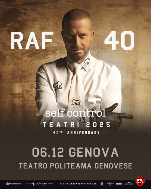 Dopo il successo del tour “Self Control 40th Anniversary”, RAF, in occasione dei 40 anni di Self Control e di carriera, torna a Genova il 6 dicembre 2025 al Politeama Genovese.